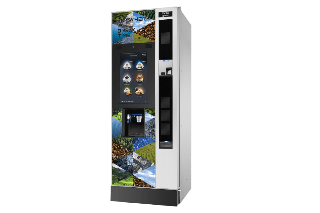 Der Heißgetränke-Automat Canto Touch zeichnet sich durch eine schnelle Getränkeausgabe aus. Die Produkte sind vorkonfiguriert und werden innerhalb weniger Sekunden ausgegeben. Der Automat eignet sich hervorragend für Wartebereiche und Events.