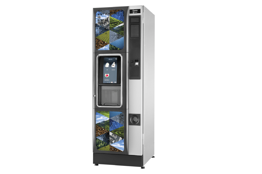 Der Heißgetränke-Automat Opera Touch zeichnet sich durch eine vereinfachte Benutzeroberfläche aus. Der Opera Touch kann hohe Nachfragen bedienen und bietet vereinzelt Konfigurationsmöglchkeiten bei den Kaffee-Spezialitäten.